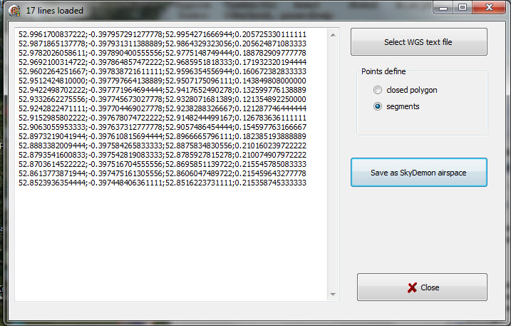 Find enclosed 2 screenshots: photo lines are loaded as airspace (1st and last lines are connected - closed polygon is a must) and a moderate size WPT.GPX is also loaded.