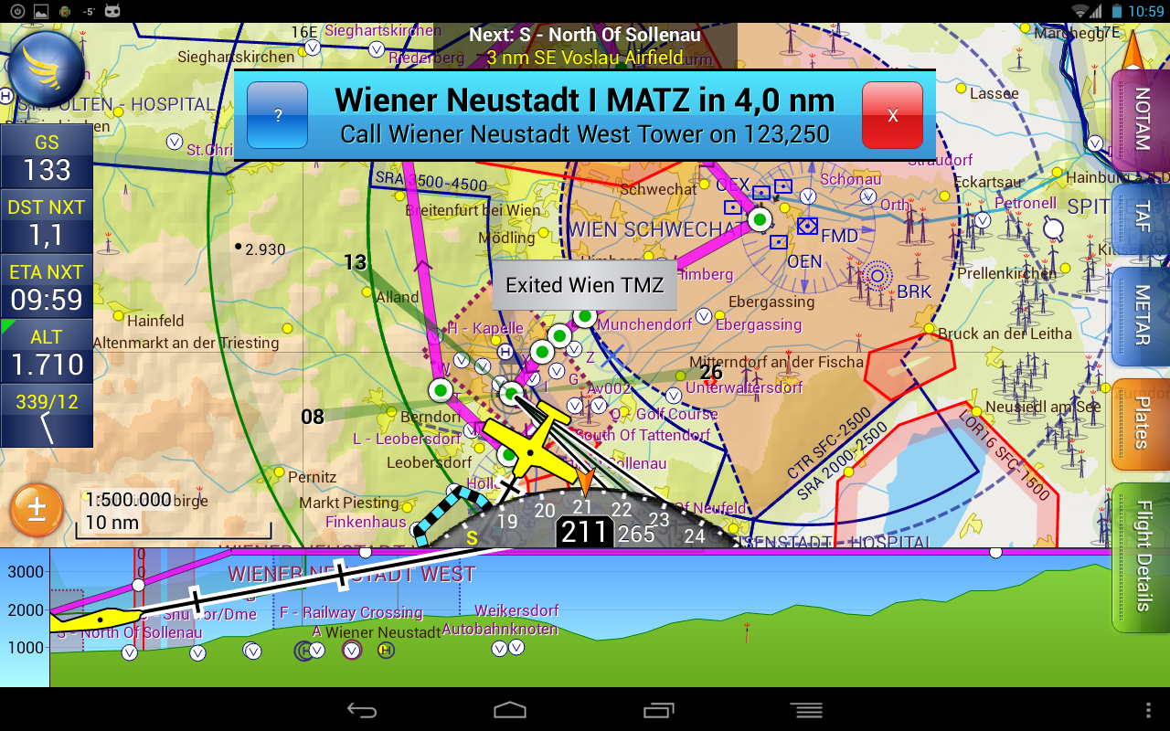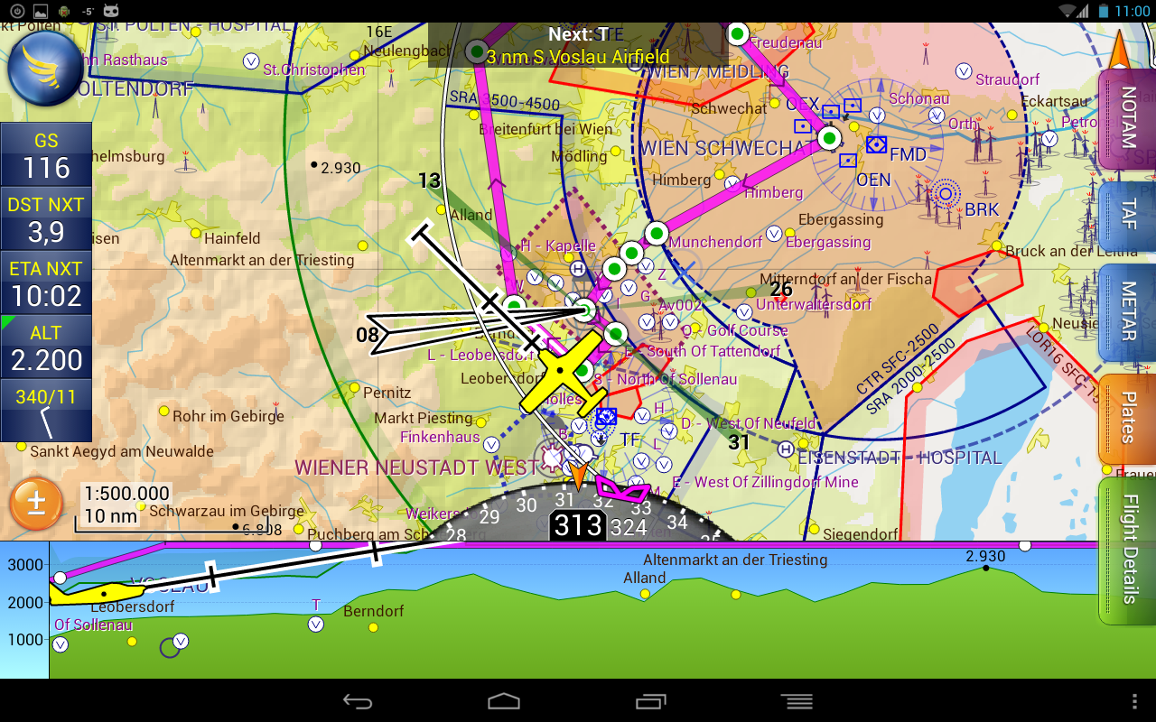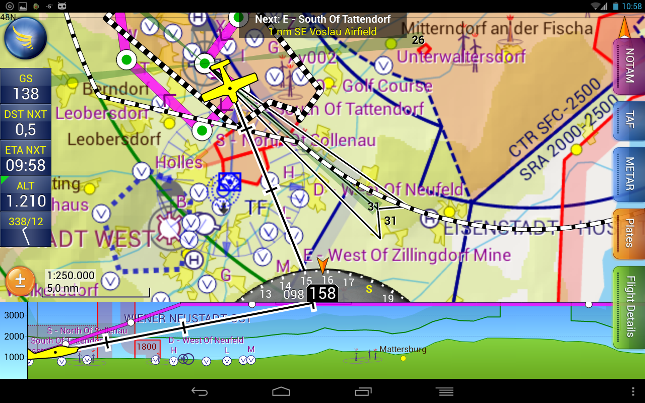 The magenta course line and the yellow airplane symbol is much too large (I used scale 1:500k and 1:250k)